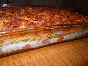 In a 9x13-inch glass dish, layer all 7 ingredients in order given above. Chill a few hours before serving. ~ ~ ~